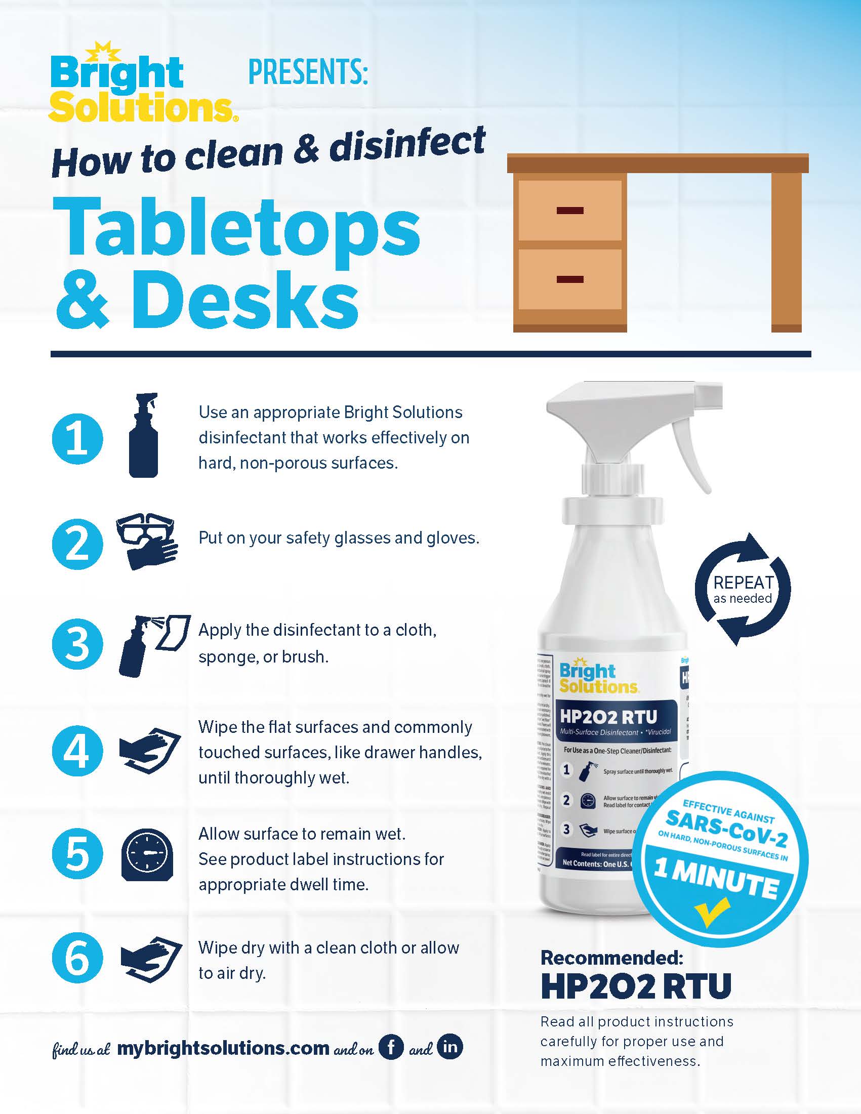 How to Disinfect – Tabletops & Desks HP2O2 RTU